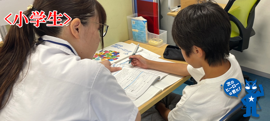 ・小学校に準拠したテキストを使用。また、授業の最初に講師が、学校進度をお子様にお聞きした上で、授業します。だから自然と小学校の授業がわかるようになります。もちろん、小学校の漢字テスト、算数の単元テストもしっかり対策をおこないます。